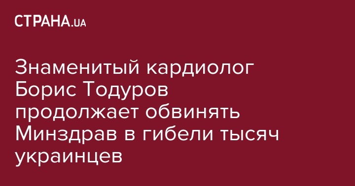 Известный украинский кардиолог, директор Киевского городского центра сердца Борис Тодуров, который ранее обвинил руководство Минздрава в массовой гибели украинцев, повторил, что готов подтвердить свои слова на суде. Об этом он сказал в видеообращении, которое записал в Facebook.