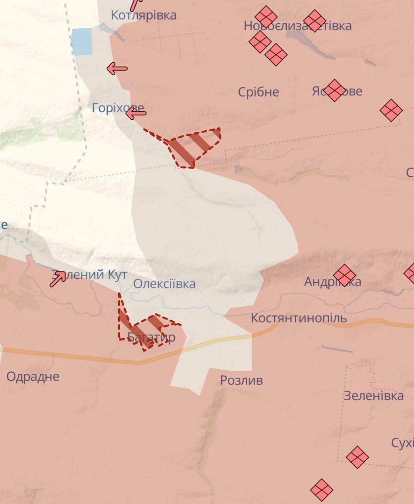 Также РФ продвинулась в Богатыре и севернее, около Орехового.