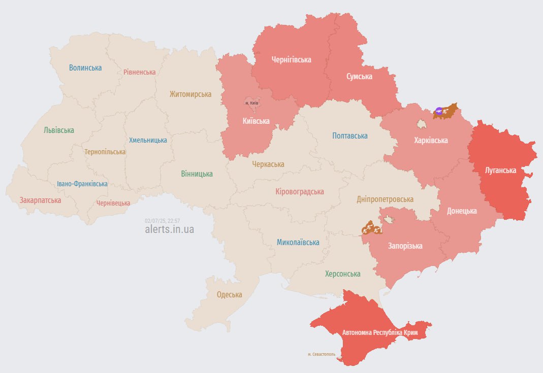 22.59 Тревога в Киеве и нескольких областях из-за "Шахедов".