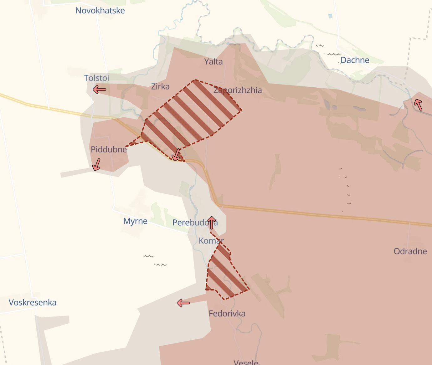 Это не первое продвижение за последние дни к югу от Запорожья. На днях россияне, по версии Deep State, захватили село Лобковое и продвинулись в соседнем Степном.