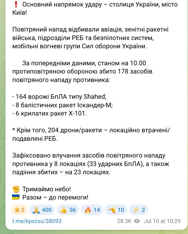По его словам, атака длилась почти десять часов, а главной целью был Киев.