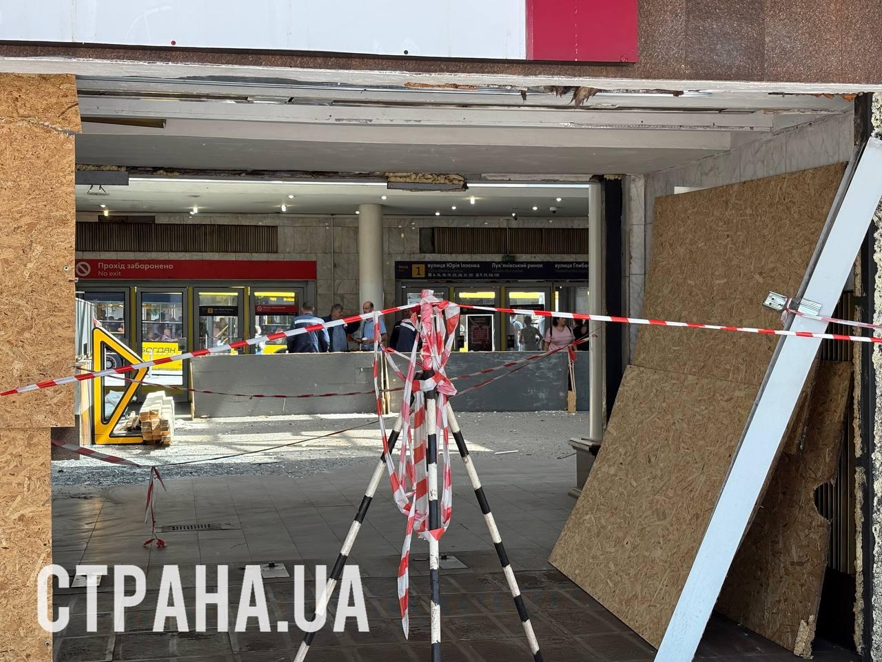 09:28 Еще видео повреждений у входа в метро Лукьяновка в Киеве.