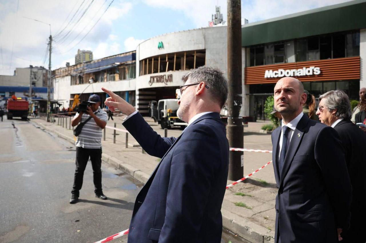 14:57 В Киев после ночного массированого обстрела приехал глава МИД Франции Жан-Ноэль Барро и посетил сильно пострадавшую Лукьяновку.