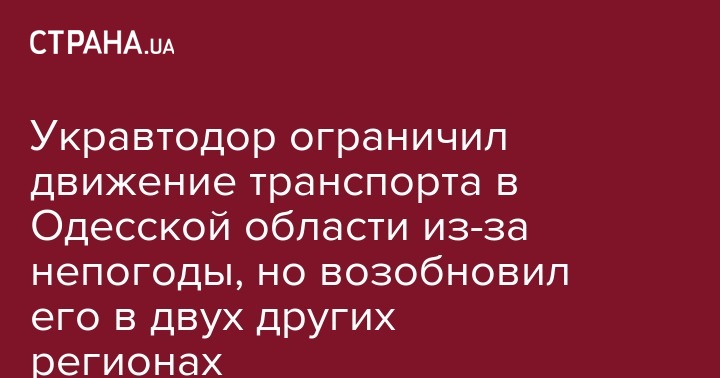 Укравтодор ограничил движение транспорта в Одесской области из-за непогоды, но возобновил его в двух других регионах