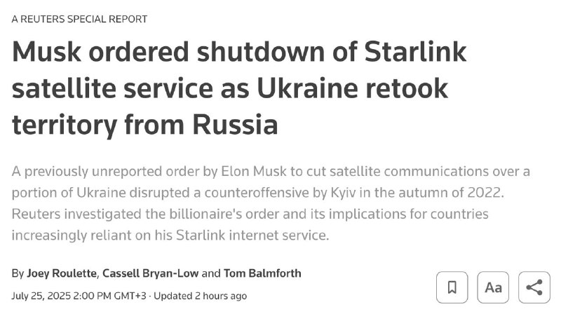 Сам Маск, комментируя слухи о возможном отключении Starlink, говорил, что "мы бы никогда так не поступили".
