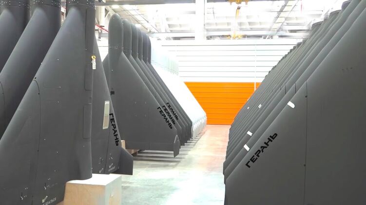 "Одно время планировалось выпустить несколько тысяч "Гераней". Сейчас мы производим в девять раз больше, чем планировалось изначально", - говорят в российском сюжете об этом заводе. После почти трех лет работы как иранской франшизы предприятие теперь полностью перешло к локализованному производству.