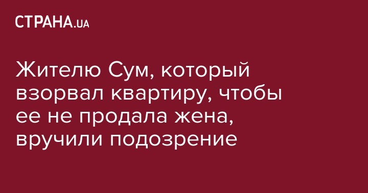 Следователи вручили уведомление о подозрении 59-летнему жителю десятиэтажного дома в Сумах, который совершил взрыв в своей квартире, в результате чего погибла женщина этажом ниже, а сам виновник происшествия с травмами находится в больнице, сообщает в четверг пресс-служба прокуратуры Сумской области.
