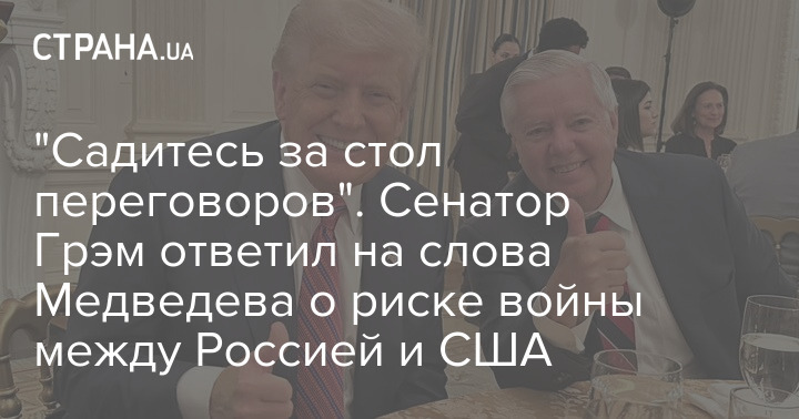 Американский сенатор Линдси Грэм отреагировал на пост заместителя председателя Совета безопасности РФ Дмитрия Медведева, где тот заявил о риске войны между Россией и США в случае введения вторичных санкций.
