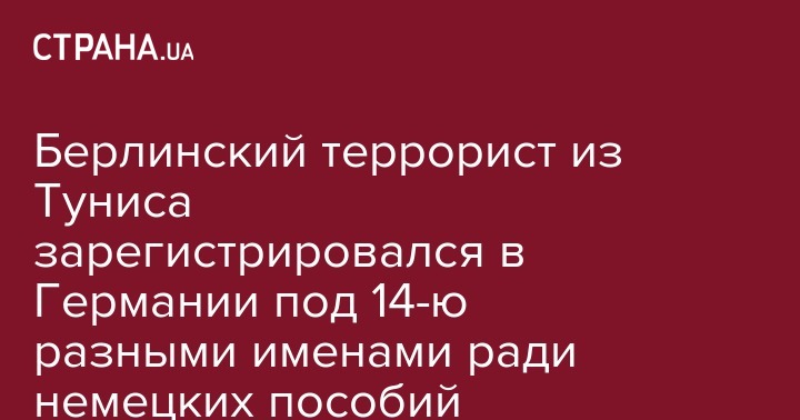 Устроивший теракт в Берлине тунисец Анис Амри регистрировался в немецких социальных службах по 14-ю различными именами.