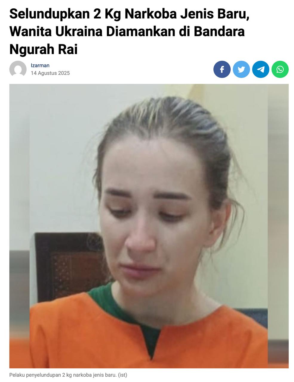 В аэропорту острова Бали арестовали украинку с двумя килограммами наркотиков. 21-летней Екатерине Вакаровой из Одессы грозит смертная казнь, сообщают в украинских сообществах на Бали.