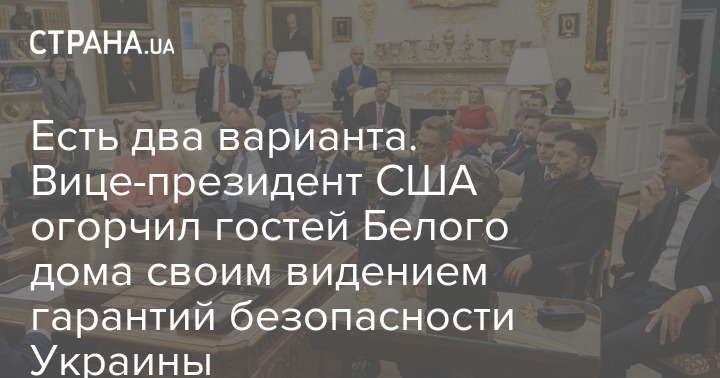 Вице-президент Соединённых Штатов Джей Ди Вэнс в ходе встречи руководства США, лидеров стран Европейского союза и Владимира Зеленского предложил два варианта гарантий безопасности для Украины, которые не понравились присутствующим, сообщает "ЗН" со ссылкой на источник.