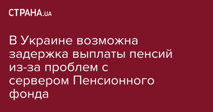 Сервер данных Пенсионного фонда Украины перестал работать и не принимает документы и отчеты. Не исключено, что выплата пенсии на следующий период может быть задержана до исправления неполадки. Об этом пишет сайт КрымSOS .
