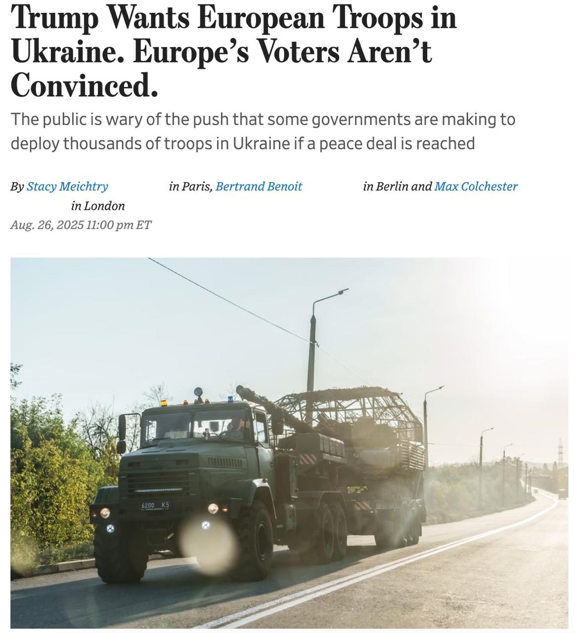 Жители Европы недовольны планами отправки миротворцев в Украину - WSJ
