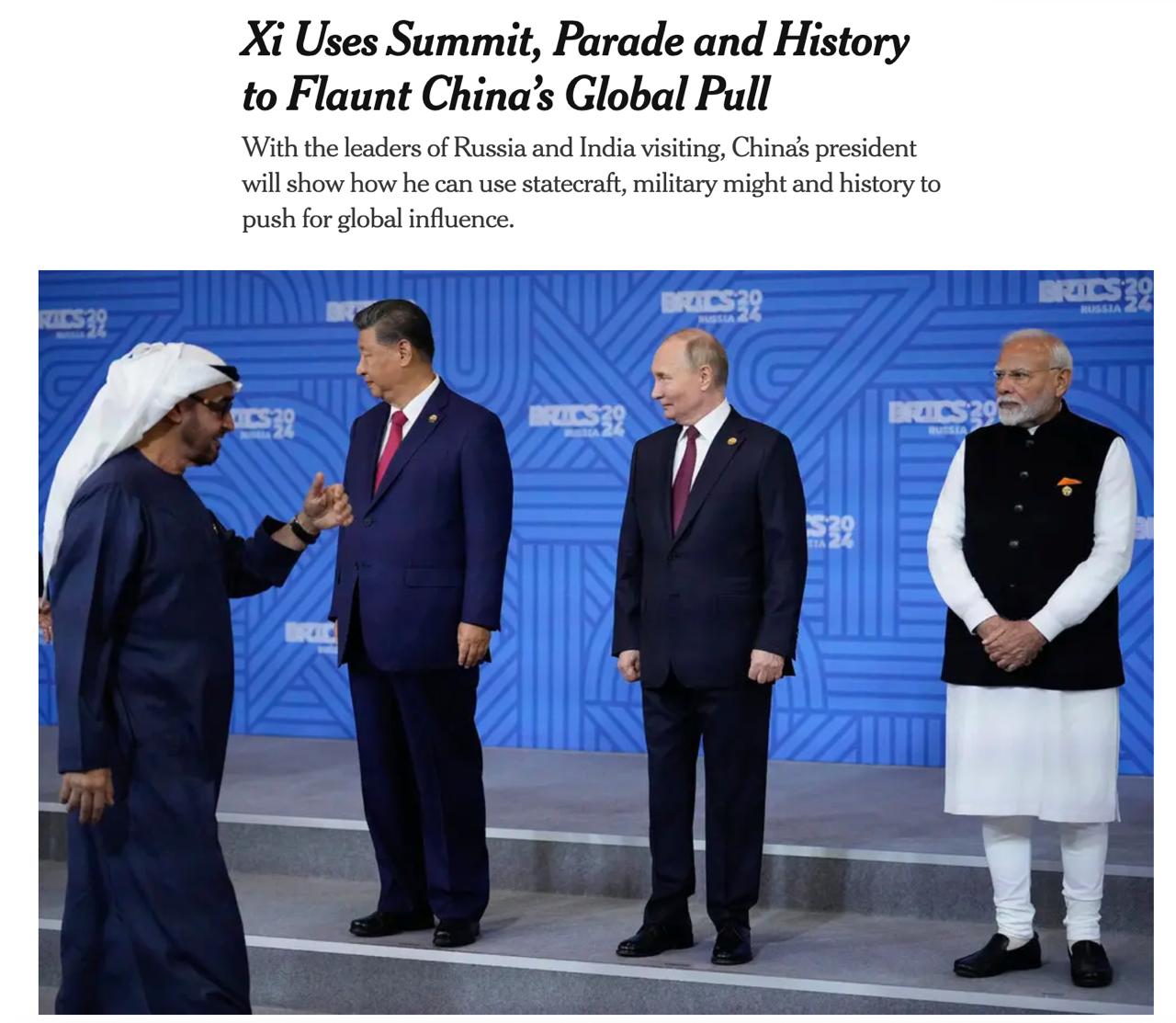 Саммит, а также следующий за ним военный парад в Пекине - "это не просто зрелище, он показывает, как Си стремится превратить историю, дипломатию и военную мощь в инструменты перестройки мирового порядка, который десятилетиями доминировали США".