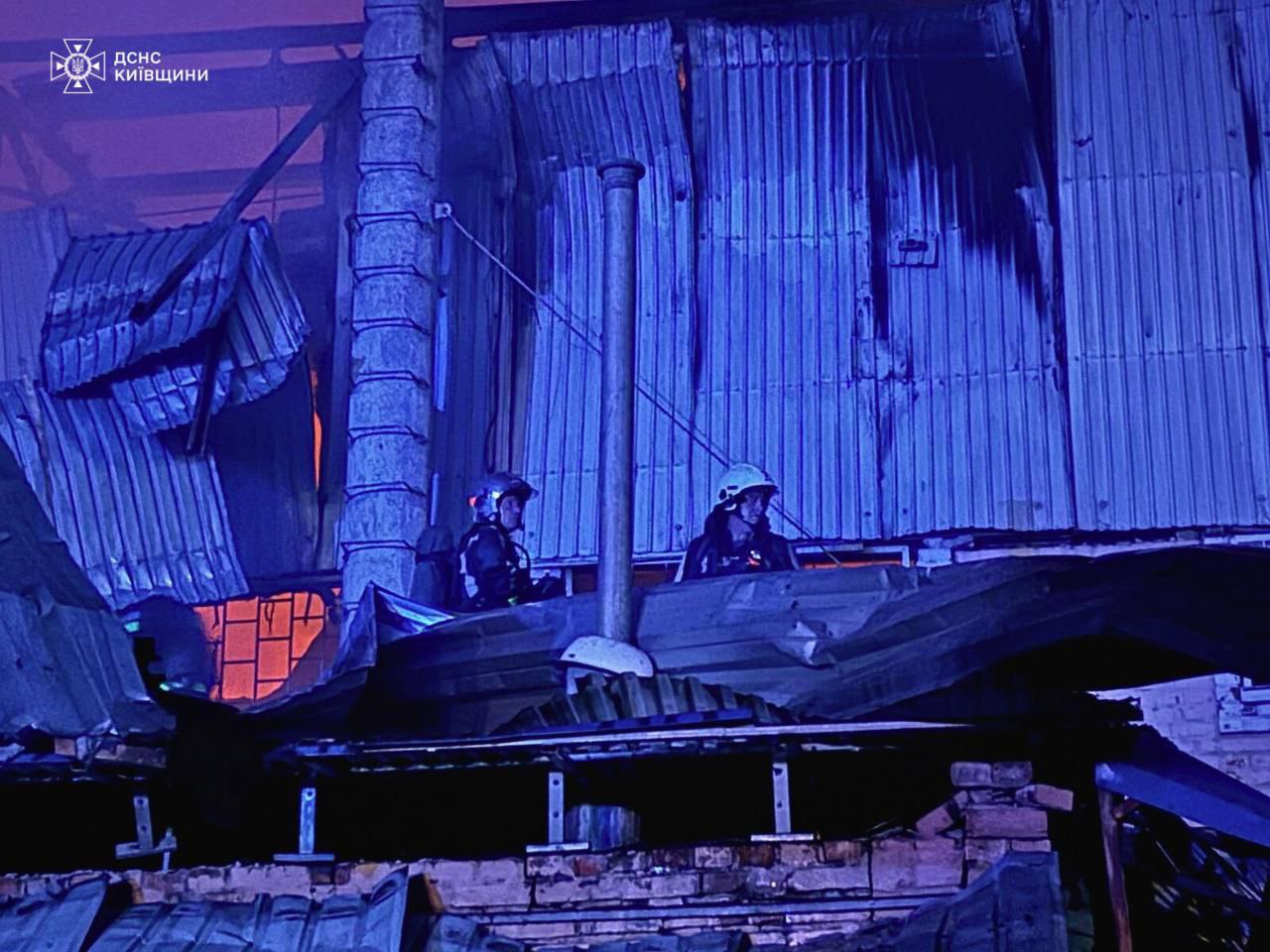 В результате ударов возникли разрушение и возгорание ангаров и трехэтажного здания предприятия. Возгорания ликвидированы.