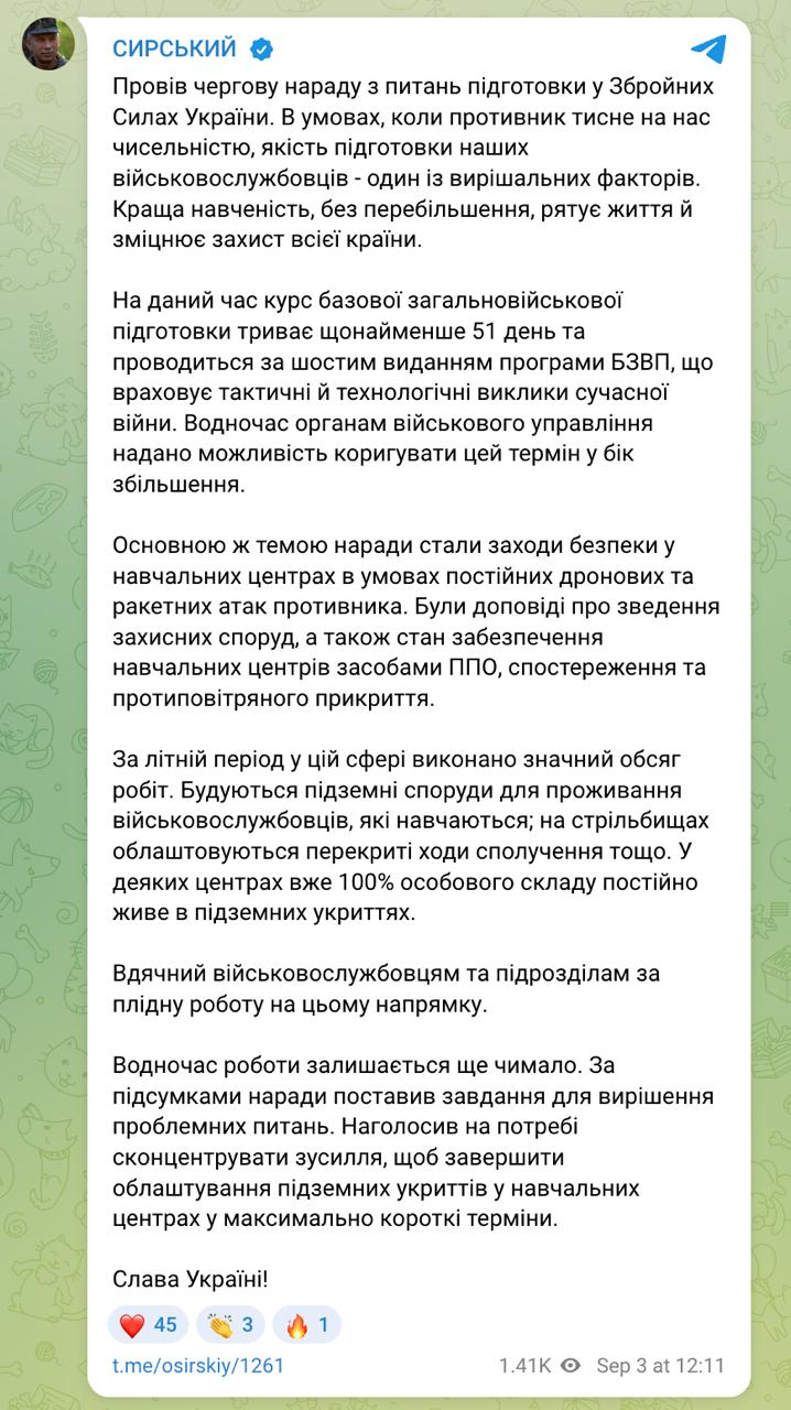 12.24 После ракетных ударов по учебным центрам ВСУ Сырский отчитался, что в некоторых частях личный состав уже полностью живет под землей.