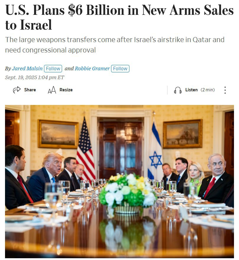 Кроме того, США планируют продажу 3250 боевых машин пехоты на 1,9 миллиарда долларов для израильской армии. Информация подтверждается документами, с которыми ознакомились The Wall Street Journal и осведомлённый источник.