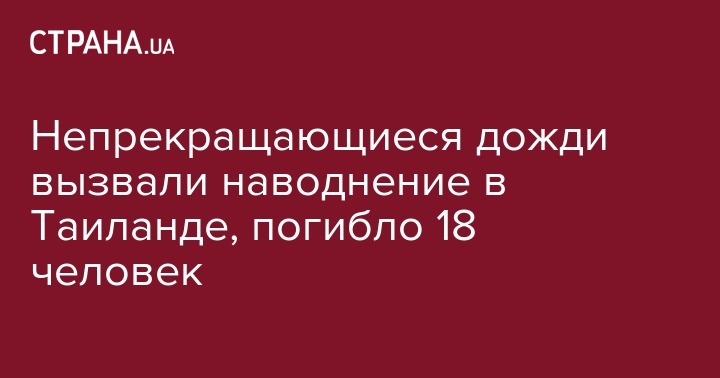 Из-за наводнения в Таиланде погибли по меньшей мере 18 человек, сильные дожди продолжают заливать юг страны. Об этом сообщает "Укринформ" со ссылкой на портал Aljazeera.