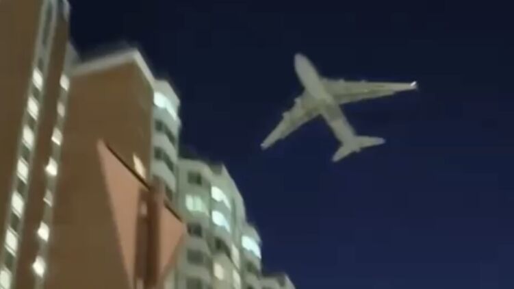 На опубликованных кадрах можно заметить, как воздушное судно летит над многоэтажками.