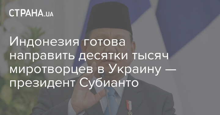 "Мы продолжим служить там, где миру нужны защитники. Не просто словами, а сапогами на земле. Если Совет Безопасности ООН и Генассамблея примут решение, Индонезия готова направить 20 тысяч и даже больше наших сыновей и дочерей для установления мира в Украине, в Газе, в Судане, в Ливии и везде, где это нужно", — сказал Субианто.