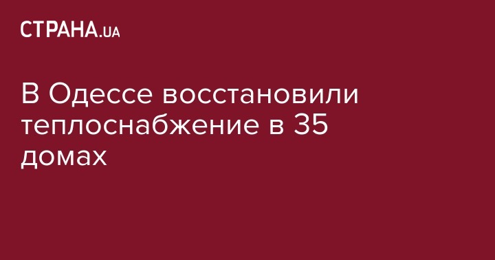 Теплоснабжение 35 домов и двух медучреждений Одессы восстановлено. Об этом сообщает вице-премьер-министр – министр регионального развития, строительства и жилищно-коммунального хозяйства Геннадий Зубко на своей странице в Facebook.