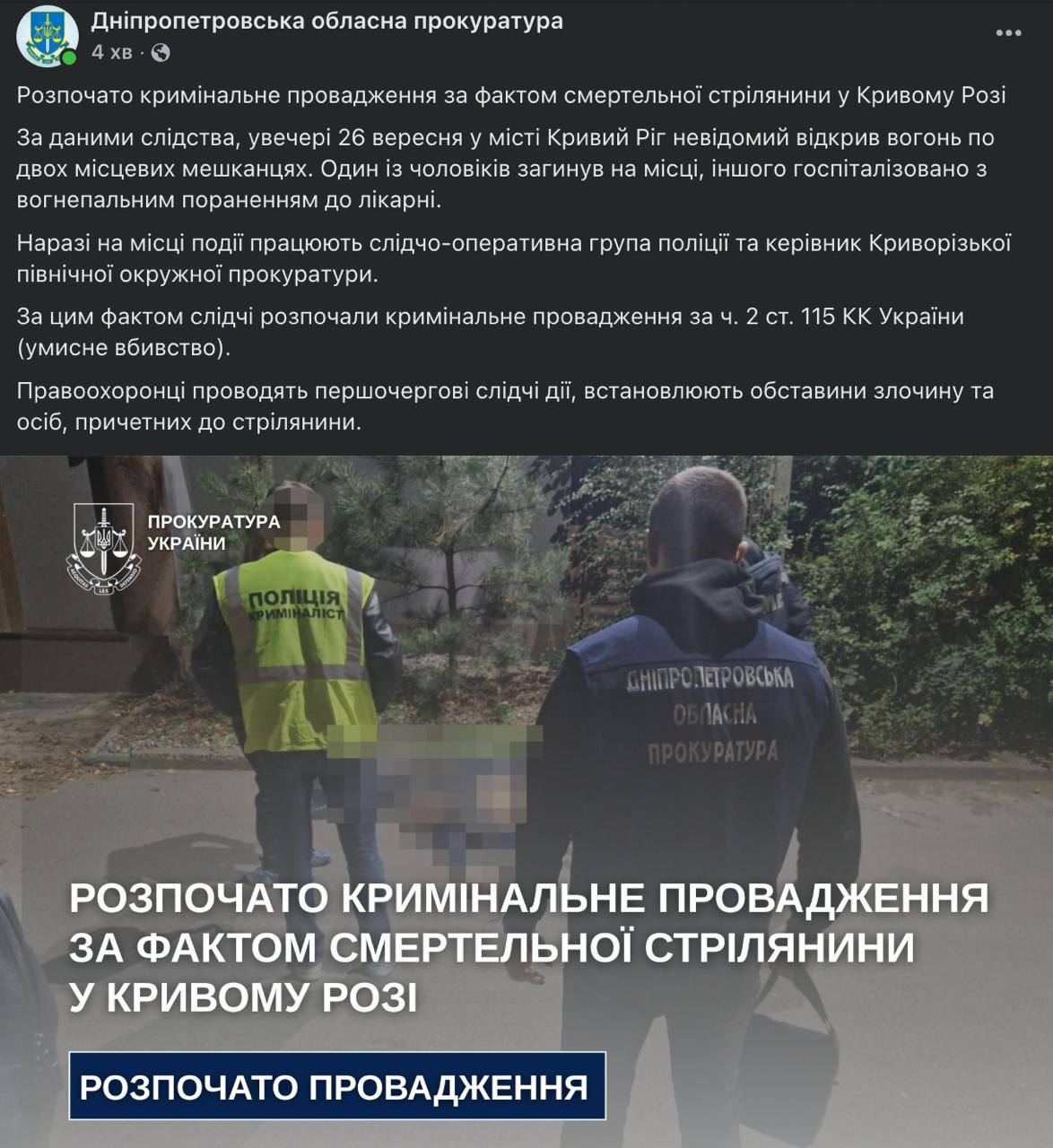 Прокуратура начала уголовное производство по факту убийства.