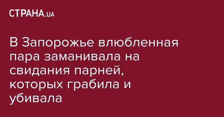 В Запорожье влюбленная пара заманивала на свидания парней, которых грабила и убивала