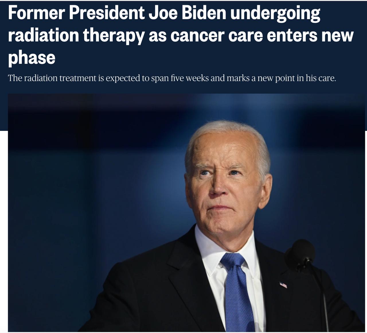 По словам пресс-секретаря, курс лучевой терапии станет новым этапом лечения Байдена.