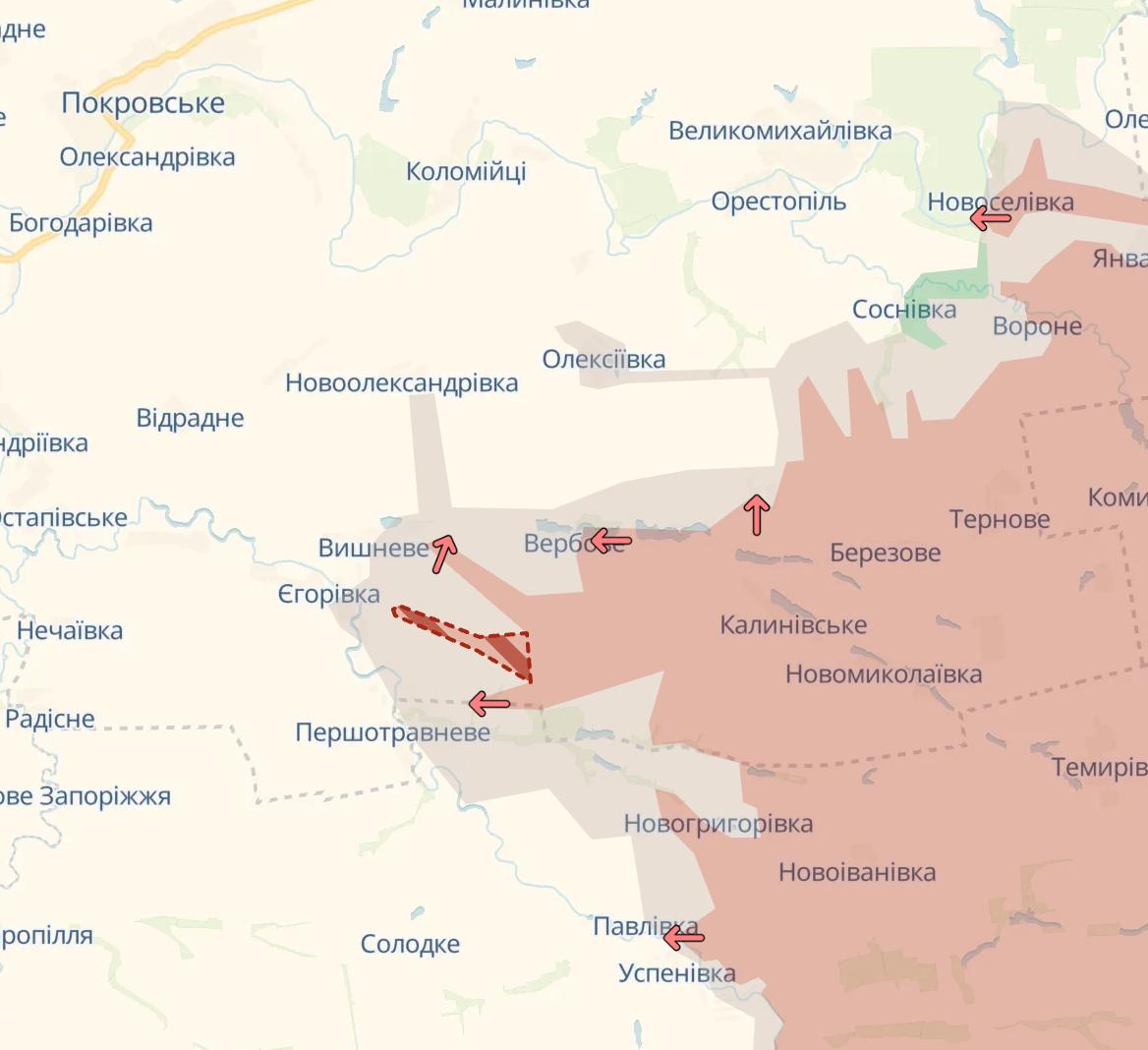 Также россияне продвинулись в Днепропетровской области в направлении Егоровки.
