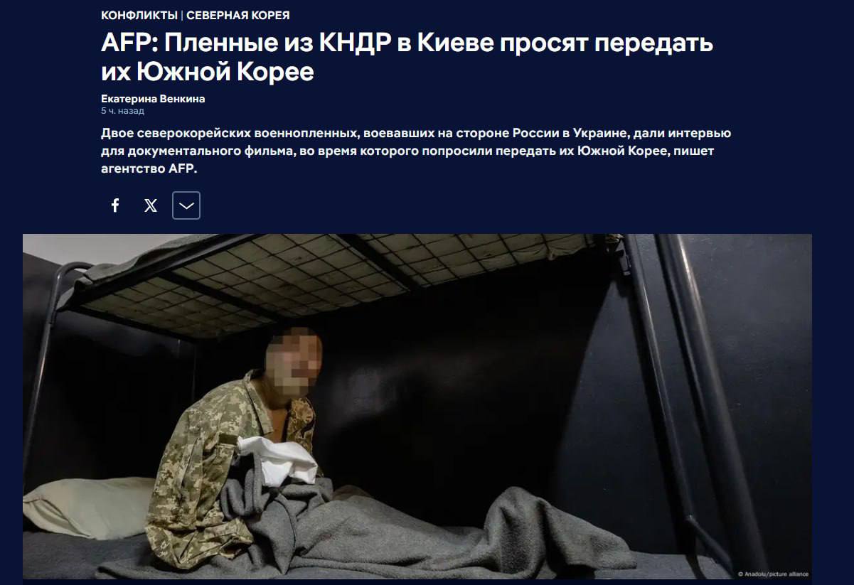 Двух северокорейских военнопленных, находящихся в Украине, передадут Южной Корее. Корейцы, попавшие в плен в ходе боев в Курской области в январе этого года, сами попросили о передаче во время съемки документального фильма об участии КНДР в войне в Украине
