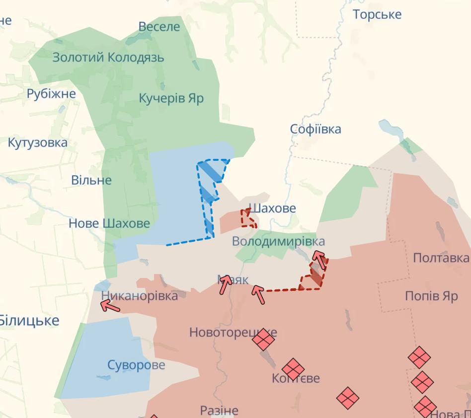 "Противник пытается также взять под контроль местность между Покровском и Гришиным, с одновременными попытками добраться до последнего. В этой местности активно продолжаются физические зачистки специальными группами, ведь это ключевой участок логистики в Покровск. Однако это всё не решает главной проблемы - блокировки противника на южных окраинах, чтобы сделать невозможным проникновение в город. А исходя из того, что россияне там уже обустраивают позиции и берут под контроль местность, эта возможность по сути утрачена", - пишет паблик.