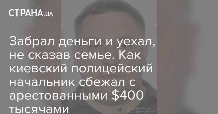 Забрал деньги и уехал, не сказав семье. Как киевский полицейский начальник сбежал с арестованными $400 тысячами
