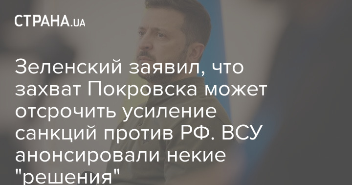 Захват Россией Покровска может отсрочить усиление против нее санкций. Владимир Путин может использовать это, как повод убедить Запад надавить на Киев с целью вывода украинских войск из Донецкой области.
