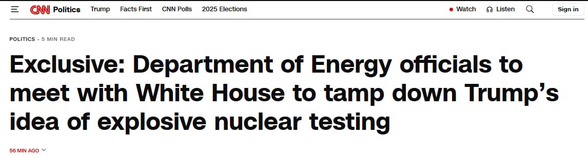 Министр энергетики США Крис Райт, глава Национальной администрации по ядерной безопасности (NNSA) Брэндон Уильямс и должностные лица из Национальных лабораторий США встретятся с представителями Белого дома и Совета нацбезопасности, чтобы убедить не возобновлять испытания ядерного оружия.
