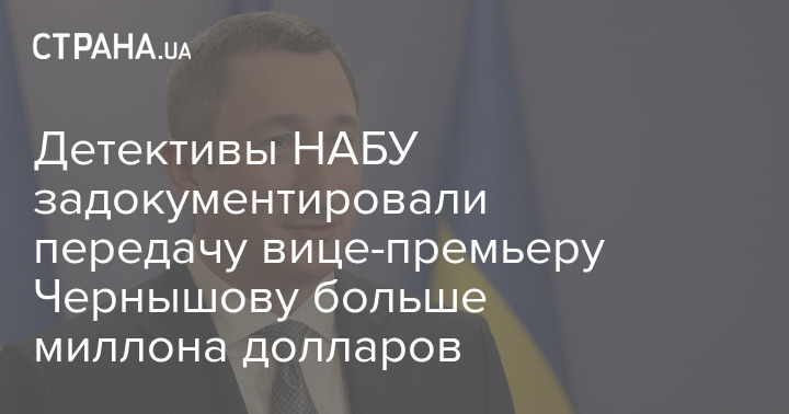 Детективы Национального антикоррупционного бюро Украины задокументировали передачу вице-премьеру Алексею Чернышову и его доверенному лицу более 1,2 млн долларов и почти 100 тысяч евро наличными.