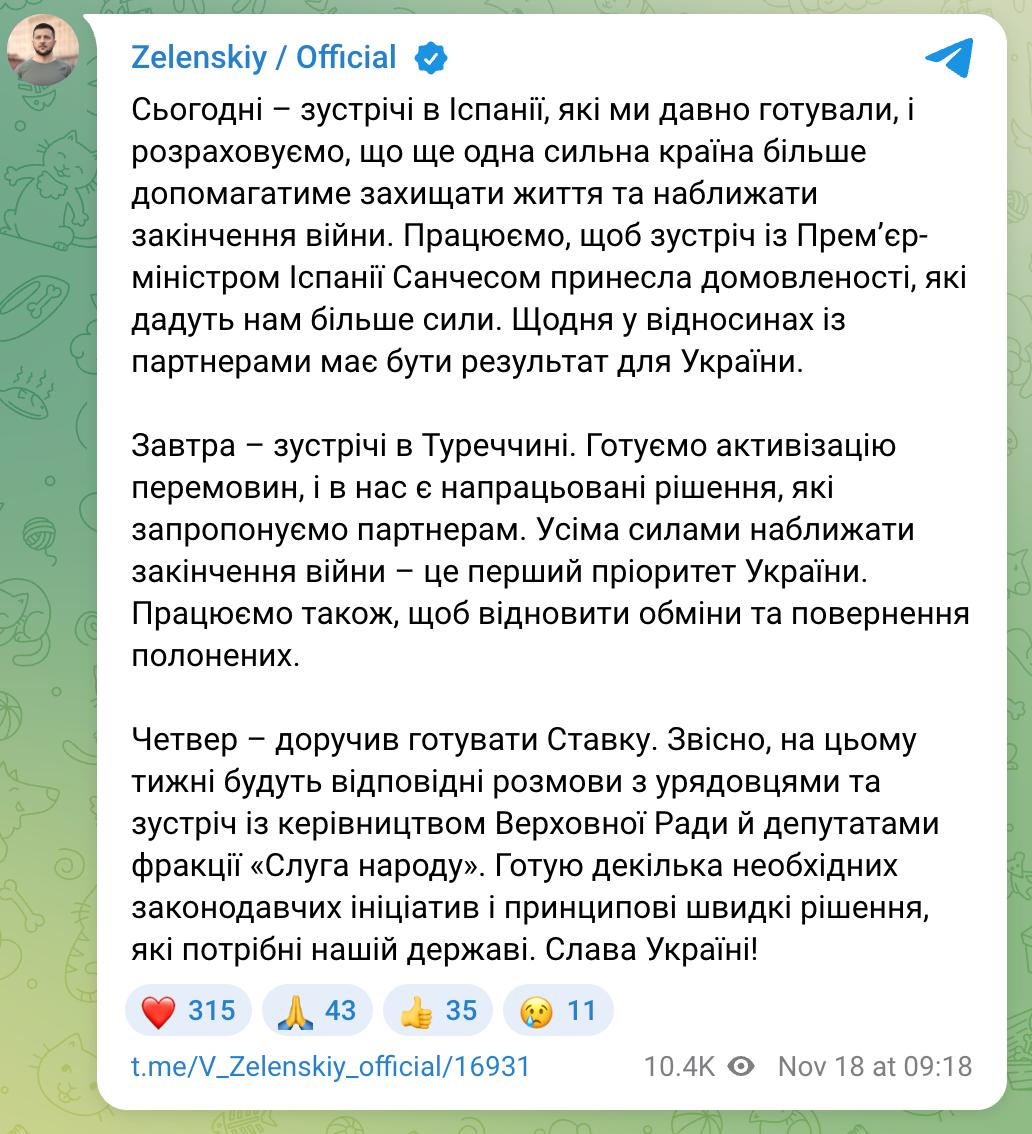 "Четверг – поручил подготовить ставку. На этой неделе пройдут соответствующие разговоры с правительством, встреча с руководством Верховной Рады и депутатами фракции "Слуги народа". Готовлю несколько необходимых законодательных инициатив и принципиальные быстрые решения, которые нужны нашей стране", - заявил Зеленский.