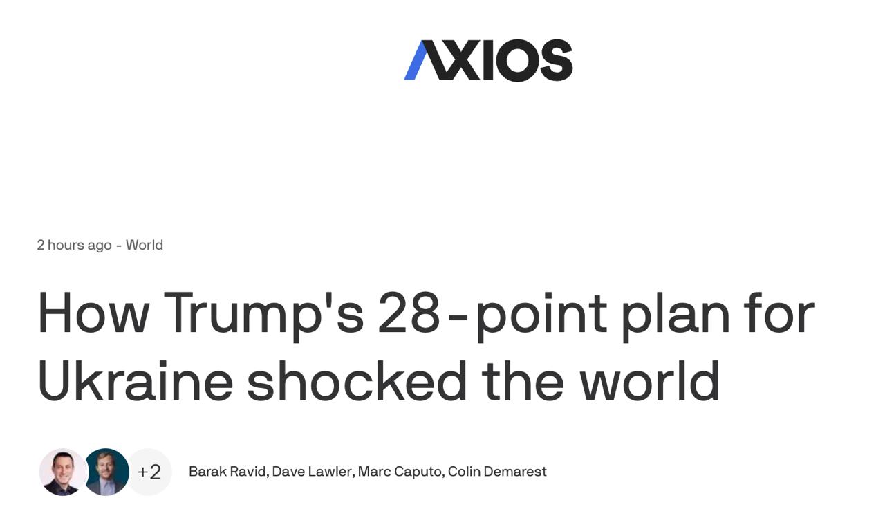 В целом Уиткофф и Кушнер начали обсуждать план еще 22 октября в самолете после достижения соглашения о Газе. В тот же день Трамп ввёл санкции против России. Американцы хотели повторить подход, примененный в Израиле, заставив обе стороны согласиться на план, который сможет обеспечить долгосрочную безопасность в Европе, а не только в Украине.