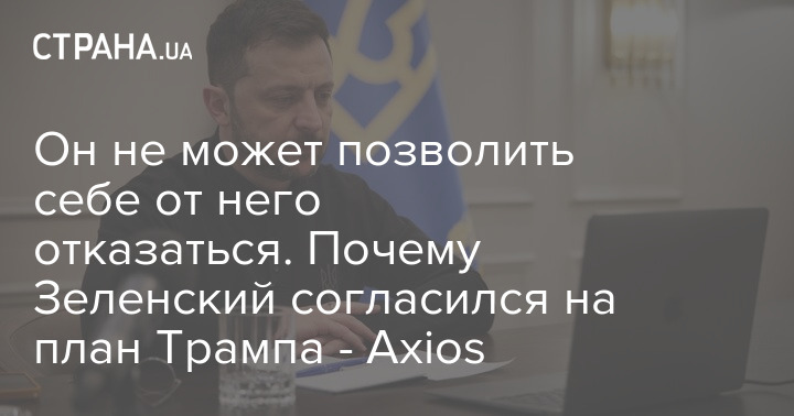 Президент Украины Владимир Зеленский согласился использовать план президента США Дональда Трампа в качестве основы для переговоров, поскольку понимал, что не может позволить себе от него отказаться.