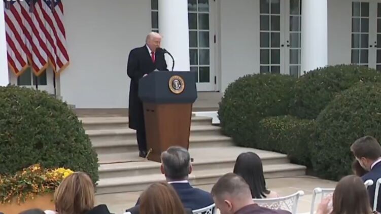 Кадры соответствующего фрагмента выступления американского лидера на торжествах в честь Дня благодарения публикуют политические телеграм-каналы.