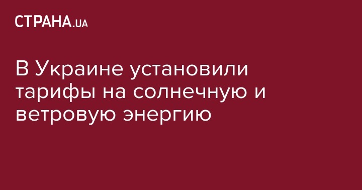 В Украине установлены для частных домохозяйств "зеленые" тарифы на электроэнергию, производимую солнечными и ветровыми установками. Соответствующее постановление приняла Нацкомиссия, осуществляющая государственное регулирование в сферах энергетики и коммунальных услуг, говорится на сайте комиссии.