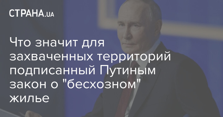 Закон этот напрямую касается захваченных украинских территорий, а точнее - объявления "бесхозным" жилья, права собственности на которое не были переоформлены по российским законам, с возможностью последующего его конфискации.