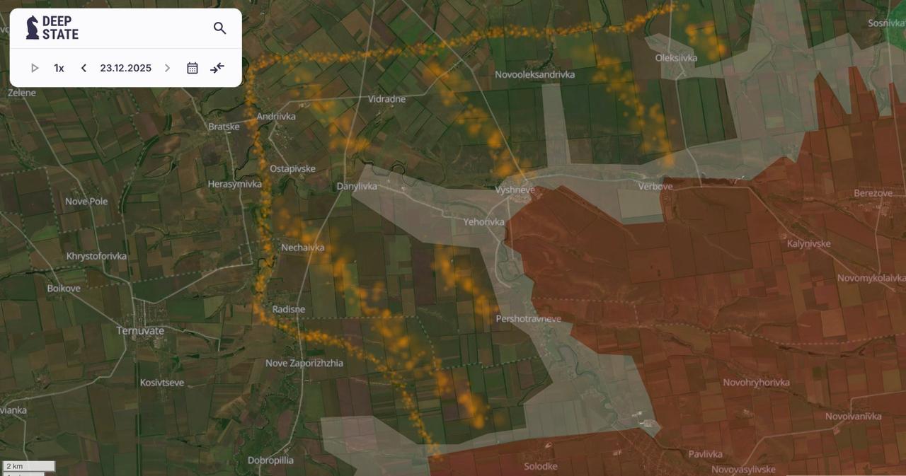 13.38 Карта Deep State отстает от реальной ситуации в Днепропетровской и Запорожской областях более чем на месяц, заявляет военный обозреватель Bild Юлиан Репке.