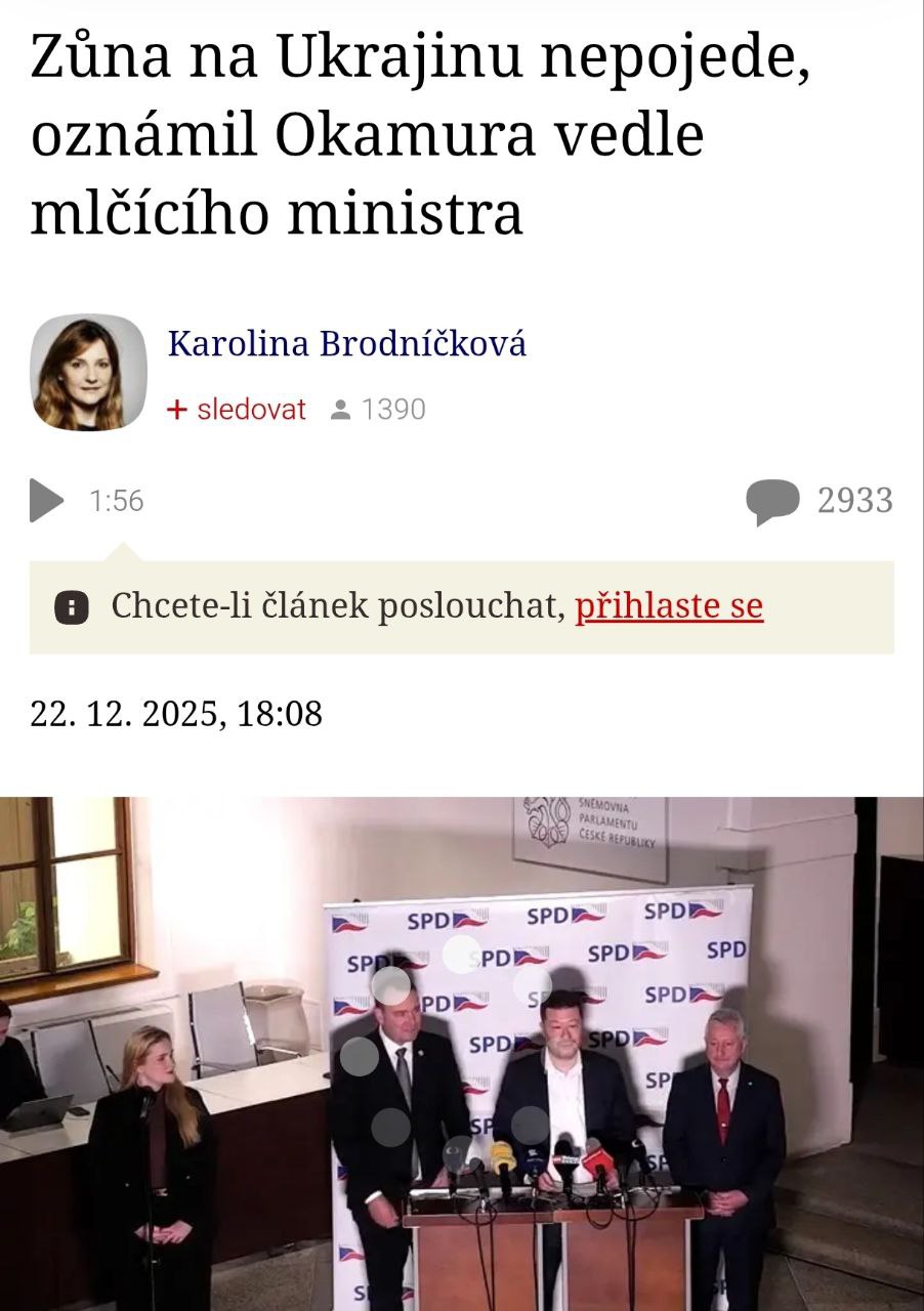 После этого один из лидеров коалиции Томио Окамура на пресс-конференции в присутствии министра заявил, что тот "не принял приглашение посетить Украину".