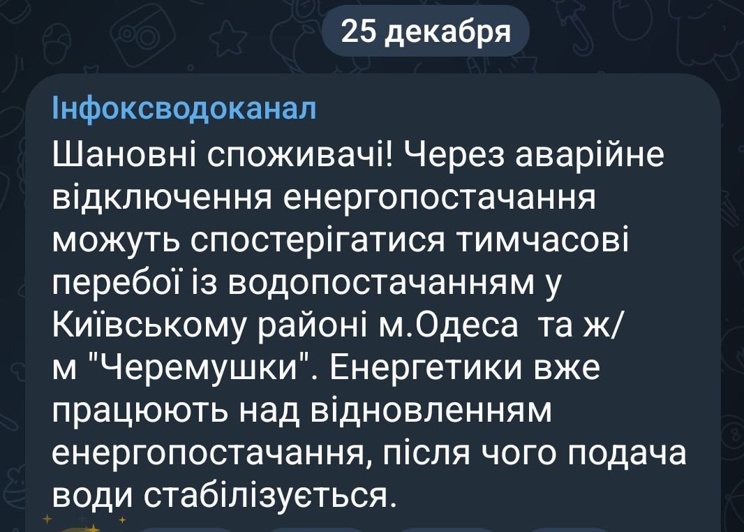 08:20 В Одессе на фоне аварии в энергетической системе начались перебои с водой, сообщает водоканал.