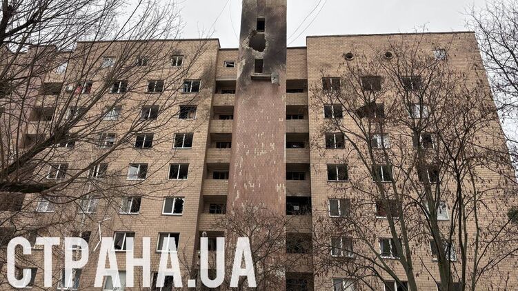 Последствия удара по общежитию НАУ. Фото: "Страна"