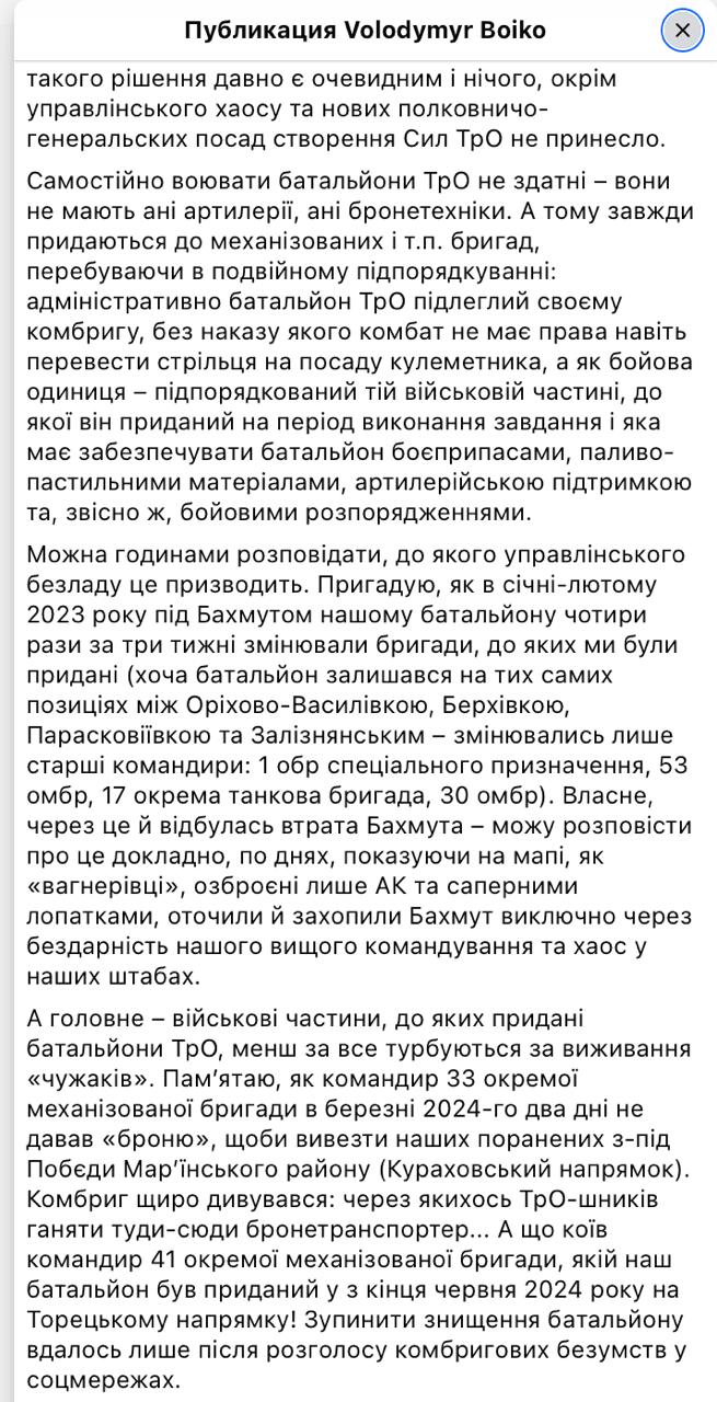 Он пишет, что в ТрО "давно некому" держать фронт.