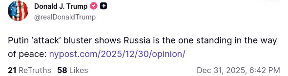 Кроме того, New York Post призывает к решительным мерам в отношении России после заявления Кремля об изменении позиции по переговорам в свете "удара по резиденции".