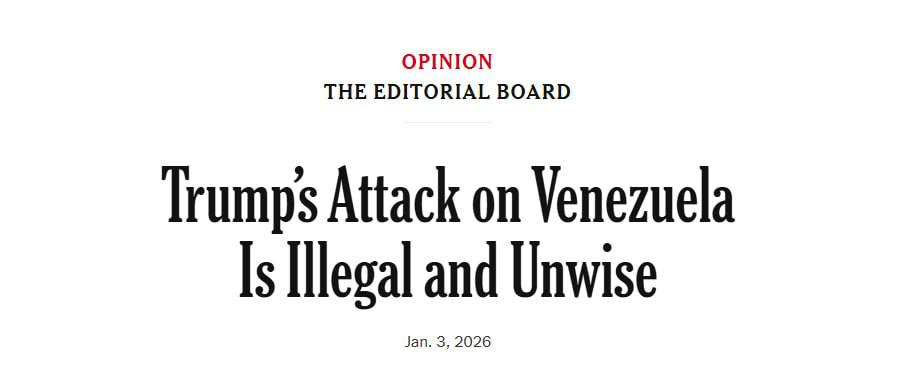 18:09 Редакция газеты The New York Times осудила атаку США на Венесуэлу и назвала его "незаконным и бездумным".