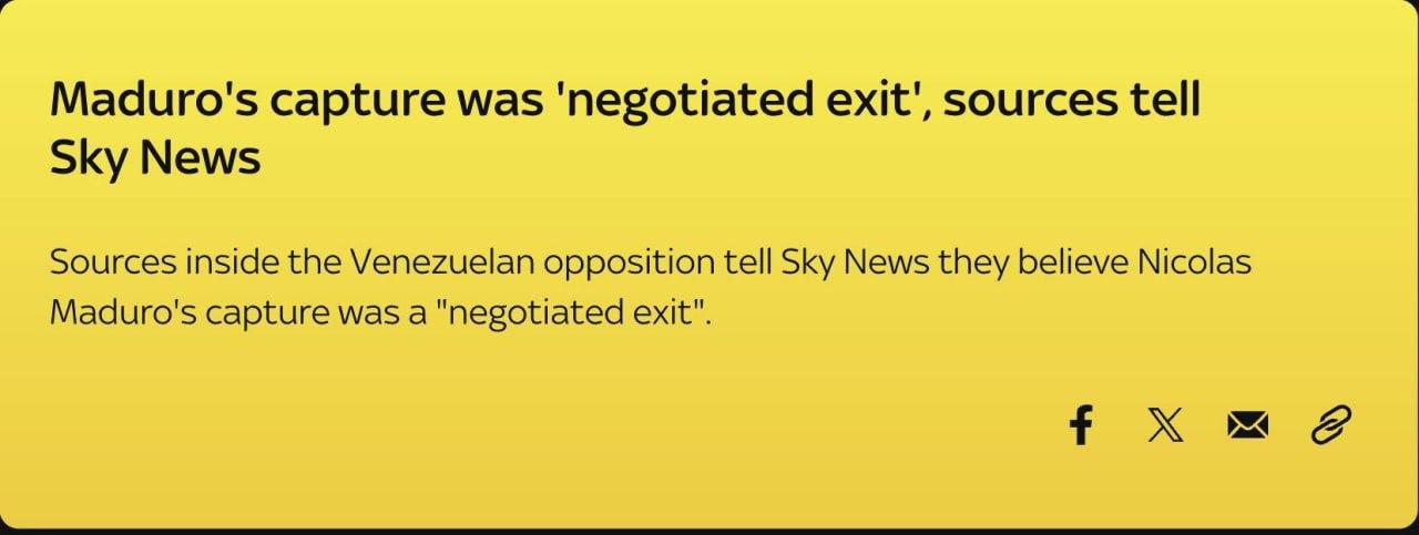 При этом телеканал Sky News со ссылкой на источники в венесуэльской оппозиции сообщил, что захват Мадуро США был "согласованным уходом".