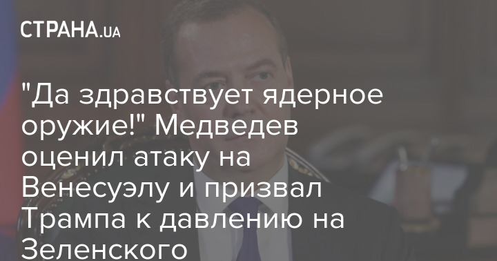 "Да здравствует ядерное оружие!" Медведев оценил атаку на Венесуэлу и призвал Трампа к давлению на Зеленского